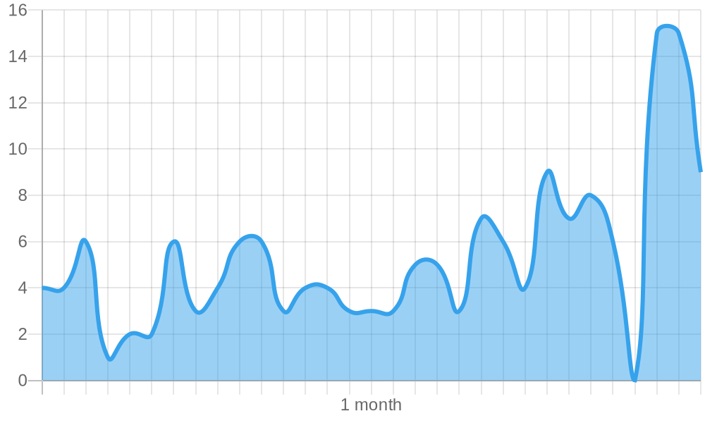Your website showed up in 4.7k searches covering 2.4k different keywords. It received 96 clicks resulting in a CTR of 2.02 %. The graphic shows the distribution over the last 90 days.