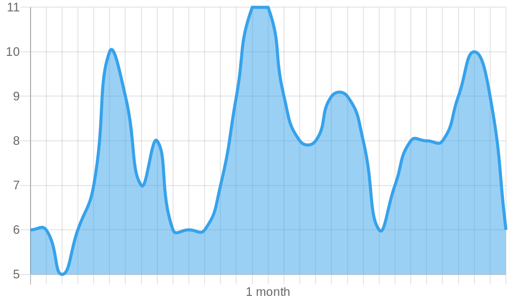 The graphs below indicate the distribution of your keyword ranking over the previous month.
